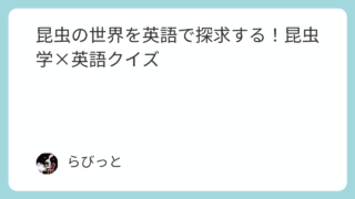 英語×専門分野クイズ 昆虫の世界を英語で探求する!昆虫学×英語クイズ 英語を学ぶ意味が分からない?勉強してもどうせ使えない?こんなことを考えたことはありませんか?しかし、英語という言語はあくまでも道具で、本来は学習する人の世界を広げるためのツールでしかありません。一つの学問を追求しようとしたら、英語で書かれて... 2025.10.06 英語×専門分野クイズ