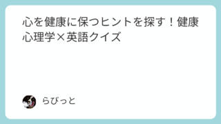 英語×専門分野クイズ 心を健康に保つヒントを探す!健康心理学×英語クイズ 英語を学ぶ意味が分からない?勉強してもどうせ使えない?こんなことを考えたことはありませんか?しかし、英語という言語はあくまでも道具で、本来は学習する人の世界を広げるためのツールでしかありません。一つの学問を追求しようとしたら、英語で書かれて... 2025.10.07 英語×専門分野クイズ