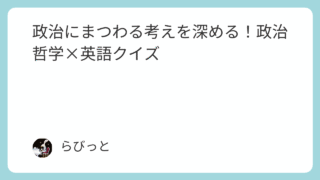 英語×専門分野クイズ 政治にまつわる考えを深める!政治哲学×英語クイズ 英語を学ぶ意味が分からない?勉強してもどうせ使えない?こんなことを考えたことはありませんか?しかし、英語という言語はあくまでも道具で、本来は学習する人の世界を広げるためのツールでしかありません。一つの学問を追求しようとしたら、英語で書かれて... 2025.10.08 英語×専門分野クイズ