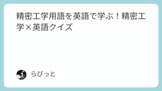 英語×専門分野クイズ 精密工学用語を英語で学ぶ!精密工学×英語クイズ 英語を学ぶ意味が分からない?勉強してもどうせ使えない?こんなことを考えたことはありませんか?しかし、英語という言語はあくまでも道具で、本来は学習する人の世界を広げるためのツールでしかありません。一つの学問を追求しようとしたら、英語で書かれて... 2025.11.12 英語×専門分野クイズ