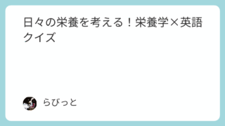 英語×専門分野クイズ 日々の栄養を考える!栄養学×英語クイズ 英語を学ぶ意味が分からない?勉強してもどうせ使えない?こんなことを考えたことはありませんか?しかし、英語という言語はあくまでも道具で、本来は学習する人の世界を広げるためのツールでしかありません。一つの学問を追求しようとしたら、英語で書かれて... 2025.10.09 英語×専門分野クイズ