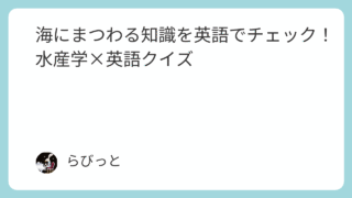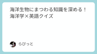 英語×専門分野クイズ 海洋生物にまつわる知識を深める!海洋学×英語クイズ 英語を学ぶ意味が分からない?勉強してもどうせ使えない?こんなことを考えたことはありませんか?しかし、英語という言語はあくまでも道具で、本来は学習する人の世界を広げるためのツールでしかありません。一つの学問を追求しようとしたら、英語で書かれて... 2025.10.10 英語×専門分野クイズ