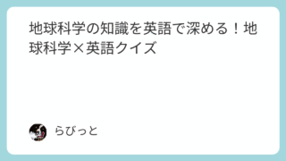英語×専門分野クイズ 地球科学の知識を英語で深める!地球科学×英語クイズ 英語を学ぶ意味が分からない?勉強してもどうせ使えない?こんなことを考えたことはありませんか?しかし、英語という言語はあくまでも道具で、本来は学習する人の世界を広げるためのツールでしかありません。一つの学問を追求しようとしたら、英語で書かれて... 2025.10.13 英語×専門分野クイズ