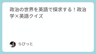 英語×専門分野クイズ 政治の世界を英語で探求する!政治学×英語クイズ 英語を学ぶ意味が分からない?勉強してもどうせ使えない?こんなことを考えたことはありませんか?しかし、英語という言語はあくまでも道具で、本来は学習する人の世界を広げるためのツールでしかありません。一つの学問を追求しようとしたら、英語で書かれて... 2025.10.14 英語×専門分野クイズ