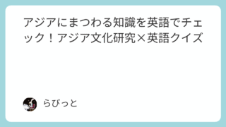 英語×専門分野クイズ アジアにまつわる知識を英語でチェック!アジア文化研究×英語クイズ 英語を学ぶ意味が分からない?勉強してもどうせ使えない?こんなことを考えたことはありませんか?しかし、英語という言語はあくまでも道具で、本来は学習する人の世界を広げるためのツールでしかありません。一つの学問を追求しようとしたら、英語で書かれて... 2025.10.15 英語×専門分野クイズ