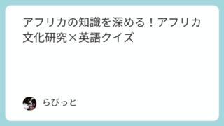 英語×専門分野クイズ アフリカの知識を深める!アフリカ文化研究×英語クイズ 英語を学ぶ意味が分からない?勉強してもどうせ使えない?こんなことを考えたことはありませんか?しかし、英語という言語はあくまでも道具で、本来は学習する人の世界を広げるためのツールでしかありません。一つの学問を追求しようとしたら、英語で書かれて... 2025.10.17 英語×専門分野クイズ