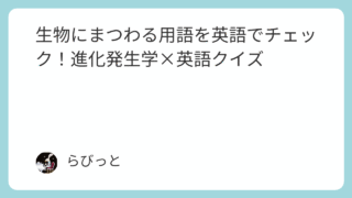 英語×専門分野クイズ 生物にまつわる用語を英語でチェック!進化発生学×英語クイズ 英語を学ぶ意味が分からない?勉強してもどうせ使えない?こんなことを考えたことはありませんか?しかし、英語という言語はあくまでも道具で、本来は学習する人の世界を広げるためのツールでしかありません。一つの学問を追求しようとしたら、英語で書かれて... 2025.09.26 英語×専門分野クイズ