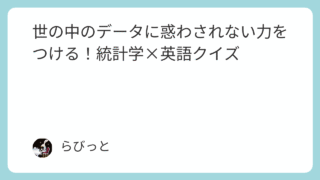 英語×専門分野クイズ 世の中のデータに惑わされない力をつける!統計学×英語クイズ 英語を学ぶ意味が分からない?勉強してもどうせ使えない?こんなことを考えたことはありませんか?しかし、英語という言語はあくまでも道具で、本来は学習する人の世界を広げるためのツールでしかありません。一つの学問を追求しようとしたら、英語で書かれて... 2025.09.28 英語×専門分野クイズ