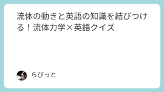 英語×専門分野クイズ 流体の動きと英語の知識を結びつける!流体力学×英語クイズ 英語を学ぶ意味が分からない?勉強してもどうせ使えない?こんなことを考えたことはありませんか?しかし、英語という言語はあくまでも道具で、本来は学習する人の世界を広げるためのツールでしかありません。一つの学問を追求しようとしたら、英語で書かれて... 2025.09.29 英語×専門分野クイズ