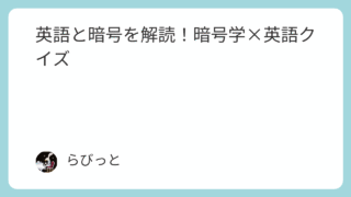 英語×専門分野クイズ 英語と暗号を解読!暗号学×英語クイズ 英語を学ぶ意味が分からない?勉強してもどうせ使えない?こんなことを考えたことはありませんか?しかし、英語という言語はあくまでも道具で、本来は学習する人の世界を広げるためのツールでしかありません。一つの学問を追求しようとしたら、英語で書かれて... 2025.10.01 英語×専門分野クイズ