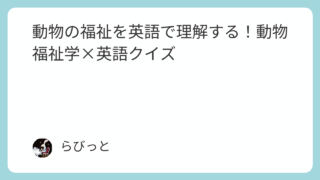 英語×専門分野クイズ 動物の福祉を英語で理解する!動物福祉学×英語クイズ 英語を学ぶ意味が分からない?勉強してもどうせ使えない?こんなことを考えたことはありませんか?しかし、英語という言語はあくまでも道具で、本来は学習する人の世界を広げるためのツールでしかありません。一つの学問を追求しようとしたら、英語で書かれて... 2025.10.02 英語×専門分野クイズ
