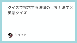 英語×専門分野クイズ クイズで探求する法律の世界!法学×英語クイズ 英語を学ぶ意味が分からない?勉強してもどうせ使えない?こんなことを考えたことはありませんか?しかし、英語という言語はあくまでも道具で、本来は学習する人の世界を広げるためのツールでしかありません。一つの学問を追求しようとしたら、英語で書かれて... 2025.10.04 英語×専門分野クイズ