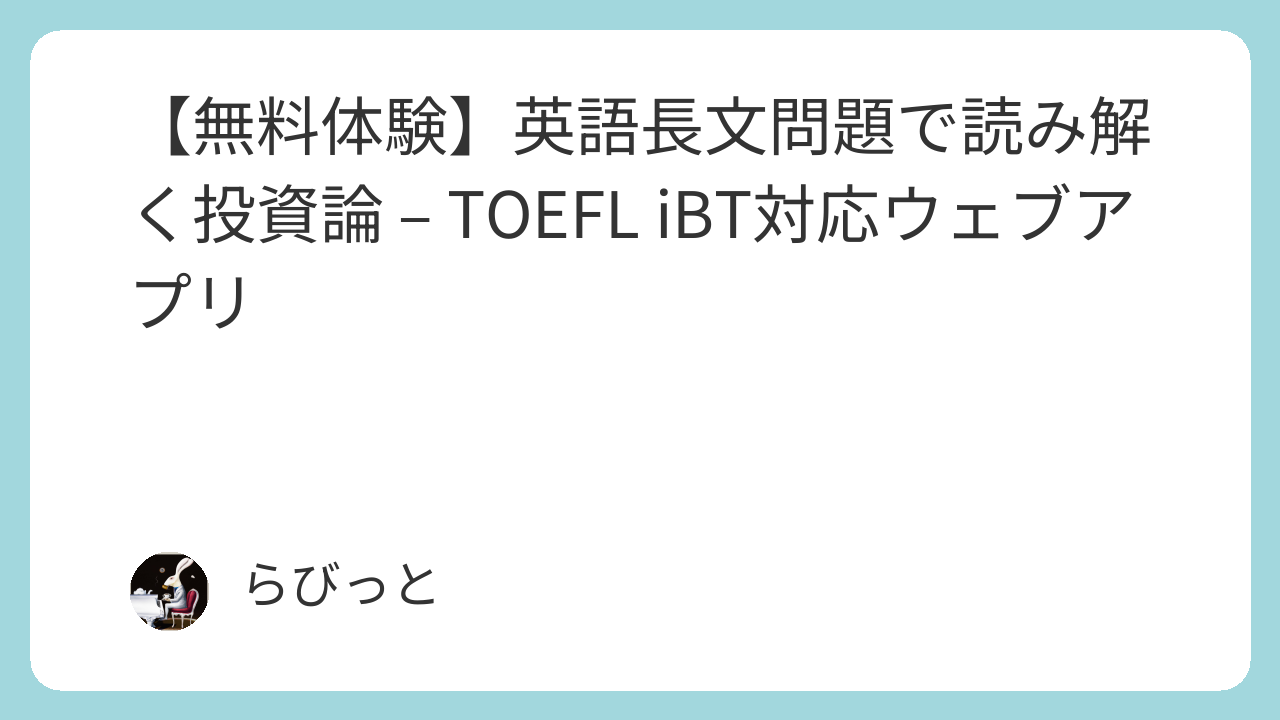 TOEFL iBTのリーディングセクションで投資論の専門用語に苦労していませんか?英検の長文対策を後回しにしていませんか?本記事では、実際の学術論文レベルの英語長文を使った無料練習アプリを提供します。段階的な学習で、複雑な投資論の概念を英語で理解できるようになります。