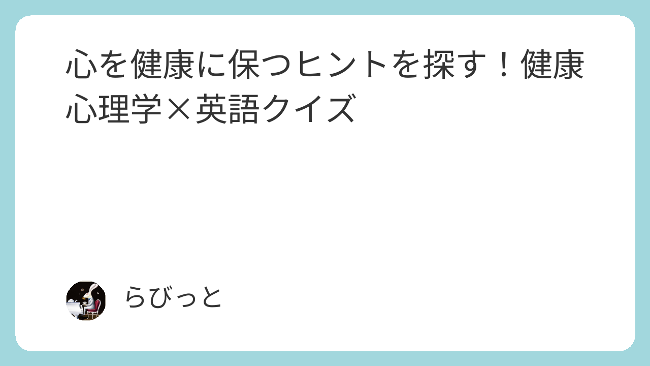 このページでは、健康心理学という学問がどのような学問なのか、英語ベースのアプリで体験してみましょう!