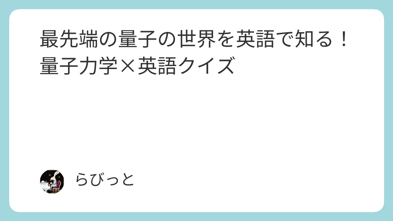 最先端の量子の世界を英語で知る!量子力学×英語クイズ