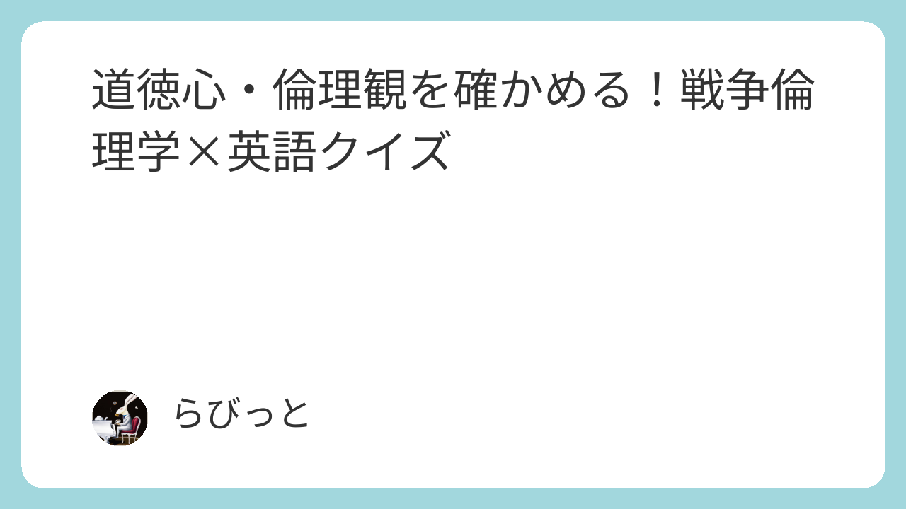 道徳心・倫理観を確かめる!戦争倫理学×英語クイズ