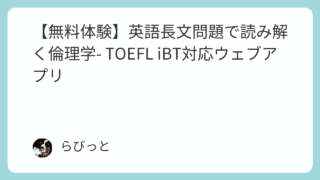 試験対策-長文ウェブアプリ 【無料体験】英語長文問題で読み解く倫理学- TOEFL iBT対応ウェブアプリ TOEFL iBTのリーディングセクションで倫理学の専門用語に苦労していませんか?英検の長文対策を後回しにしていませんか?本記事では、実際の学術論文レベルの英語長文を使った無料練習アプリを提供します。段階的な学習で、複雑な倫理学の概念を英語で理解できるようになります。 2025.10.04 試験対策-長文ウェブアプリ